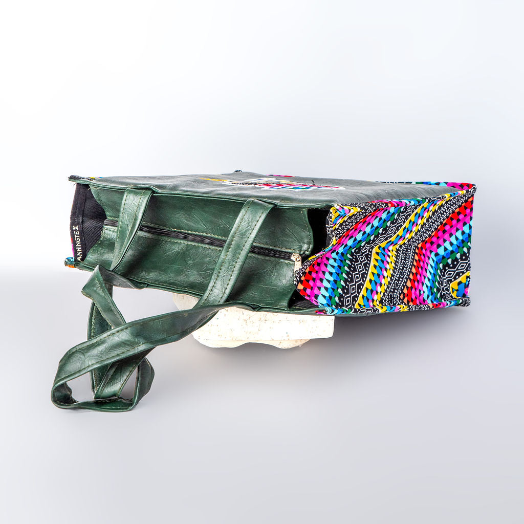 Take style and functionality wherever you go with the stunning Vibrant Tote Bag! Designed with a durable faux-leather front and vibrant patterned fabric on the sides, this bag offers a spacious interior, secure zipper closure, and comfortable shoulder straps. Perfect for travel or work, it blends elegance with everyday convenience. Make a bold statement with this stylish and versatile tote.