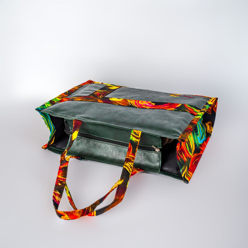The Fahari Tote Bag combines African heritage and practicality in one stylish accessory. Elevate your style with this handcrafted tote bag with vibrant tribal patterns. The unique Afrocentric embroidery adds cultural elegance, while the secure zip closure ensures your belongings stay safe. Bring practicality and culture wherever you go with this elegant tote. With its unique design and high-quality materials, it's perfect for everyday use, shopping, travel, or gifting with its sturdy handles and secure zipper closure.
